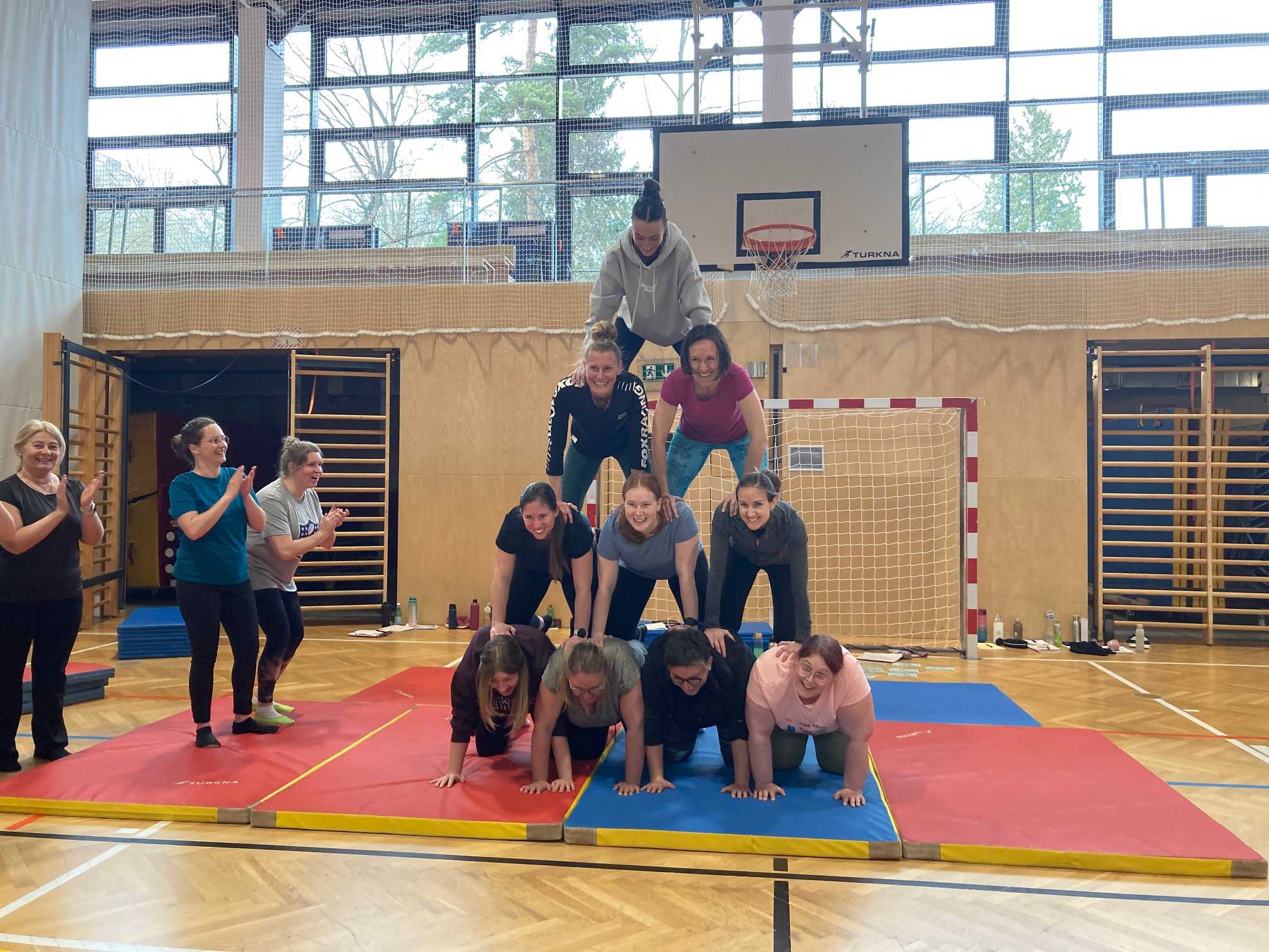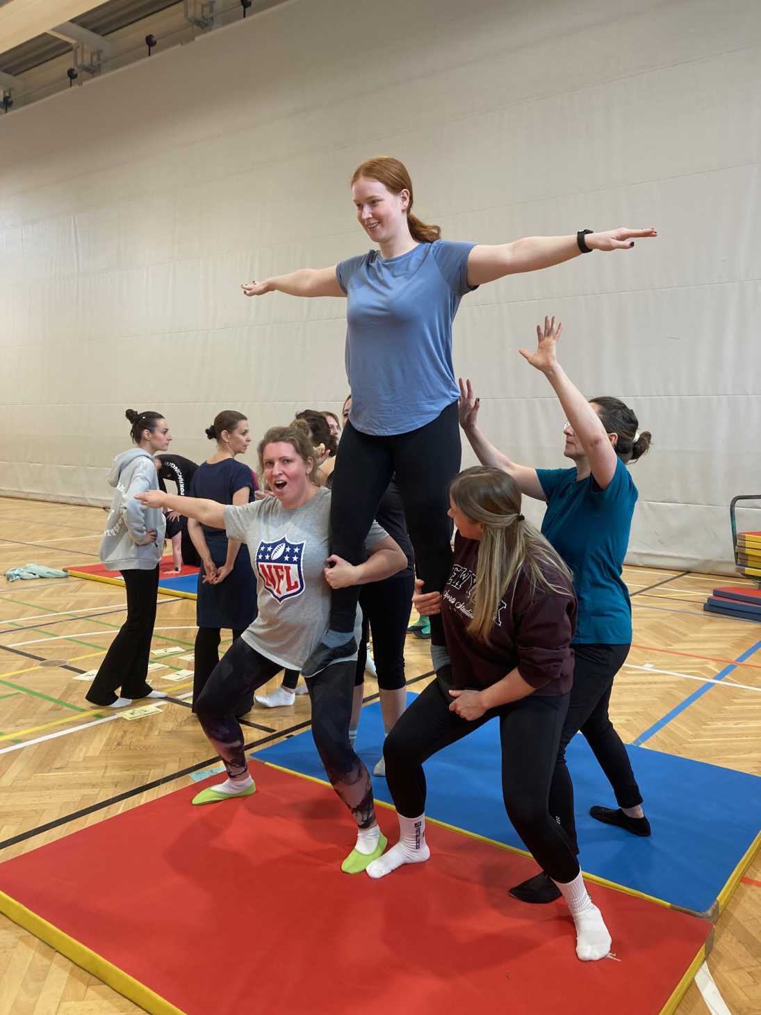 In der zweiten BEBS-Einheit zum Thema Grundlagen der Akrobatik, erarbeiteten die Studierenden des 4. Semesters,