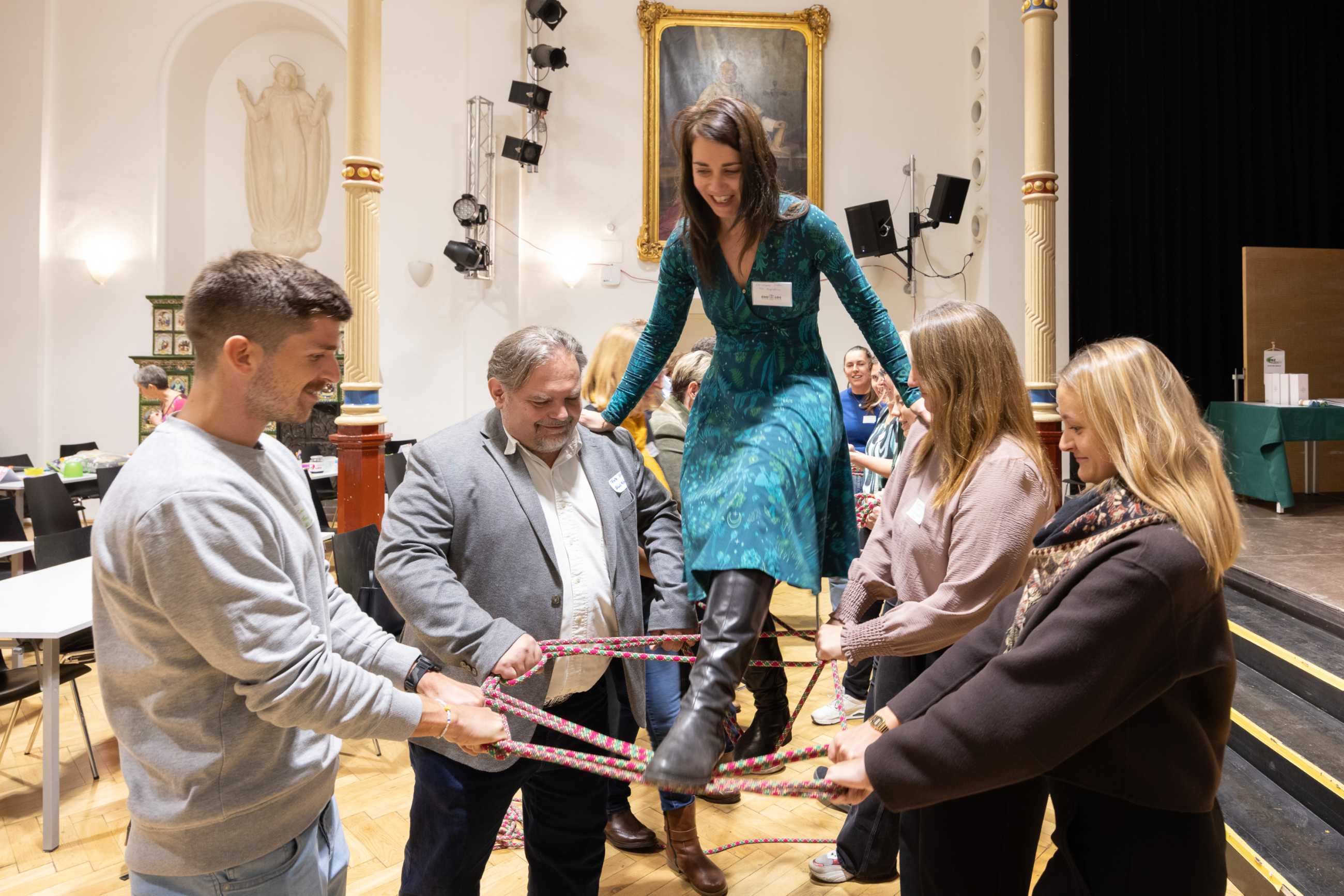 wo wir eine Aufgabe aus der Erlebnispädagogik lösen mussten (Brückenbau mit Seil, wo eine Person dann auch darüber gehen muss).