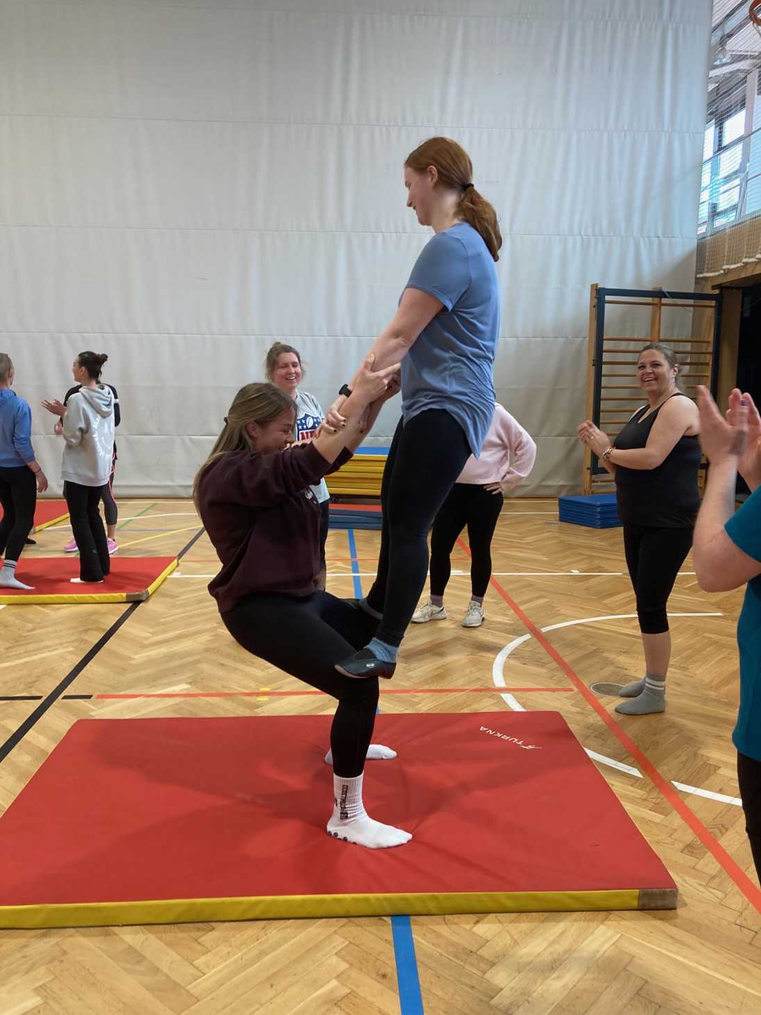 In der zweiten BEBS-Einheit zum Thema Grundlagen der Akrobatik, erarbeiteten die Studierenden des 4. Semesters,